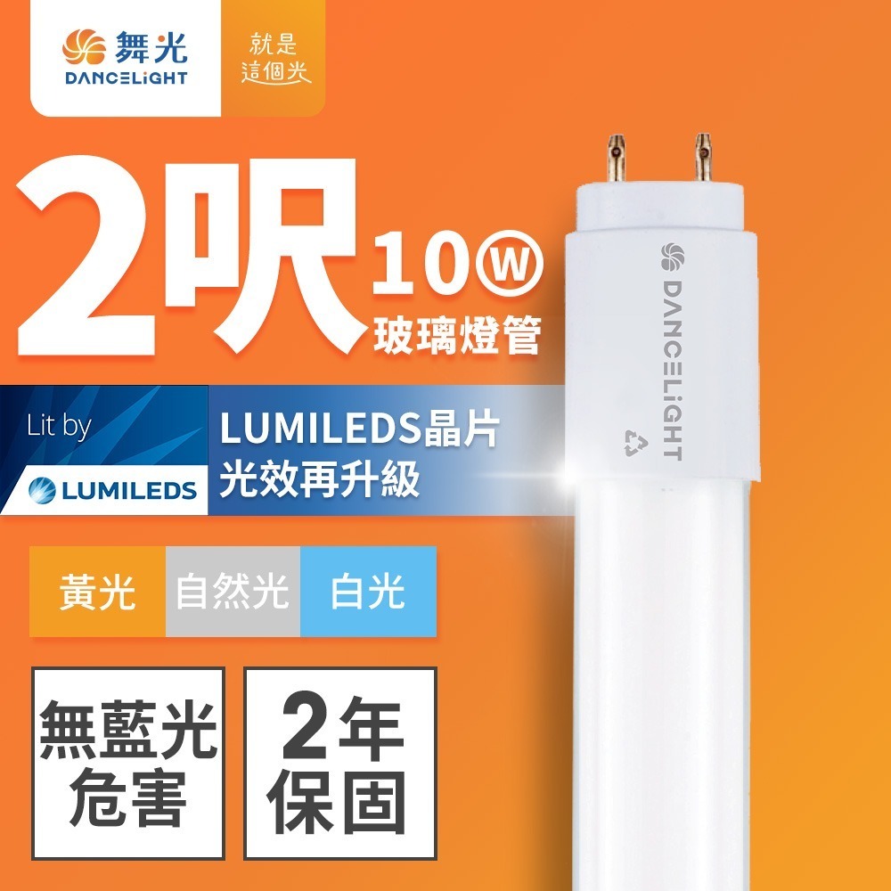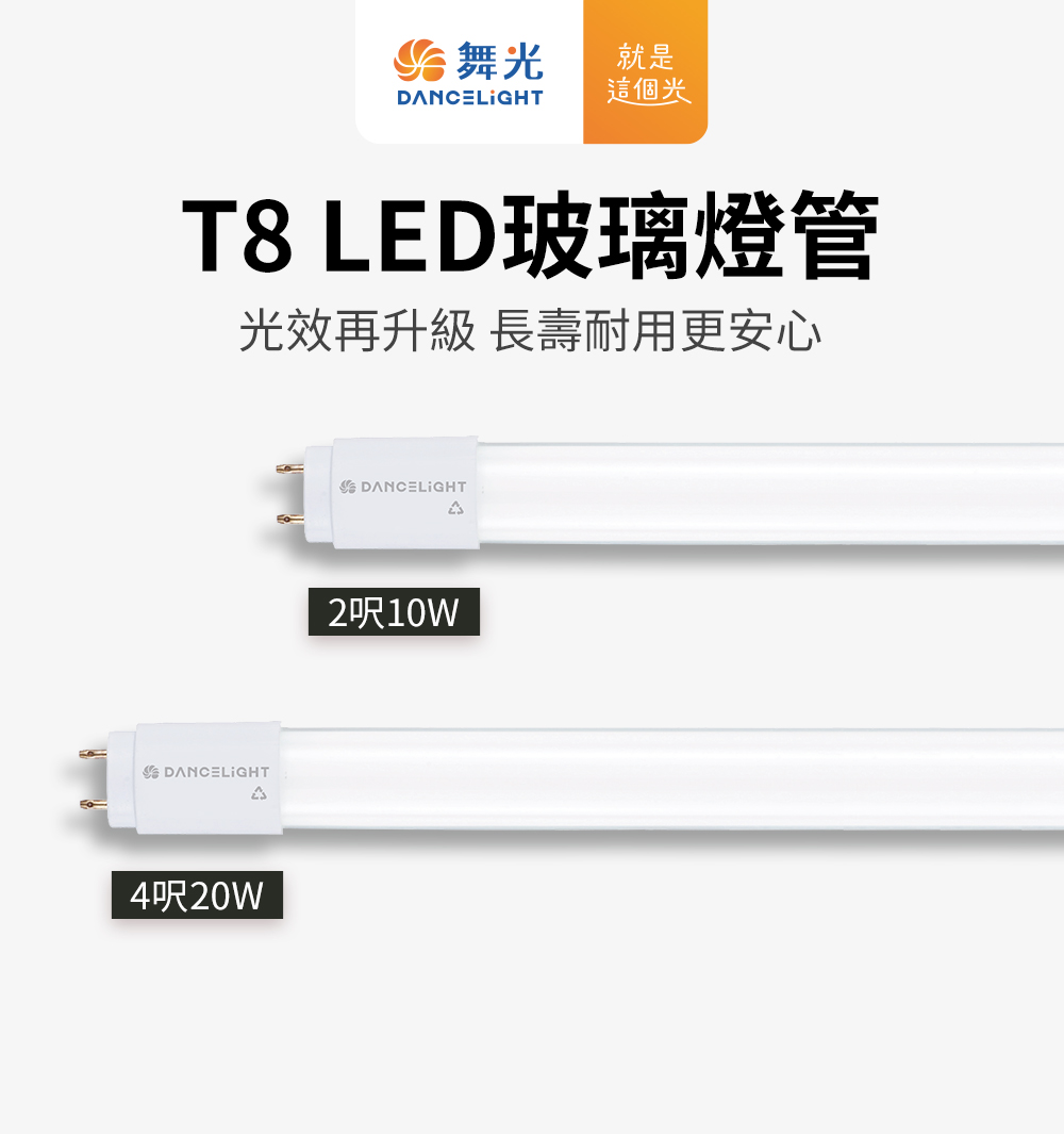 舞光 2呎/4呎 10W/20W LED新制標準玻璃燈管T8 2年保固(白光/黃光/自然光)