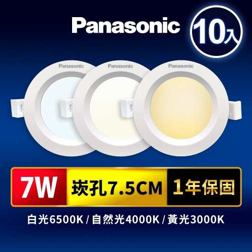 10入組 Panasonic 國際牌 崁孔7.5CM崁燈 7W LED嵌燈 1年保固 白/自然/黃光