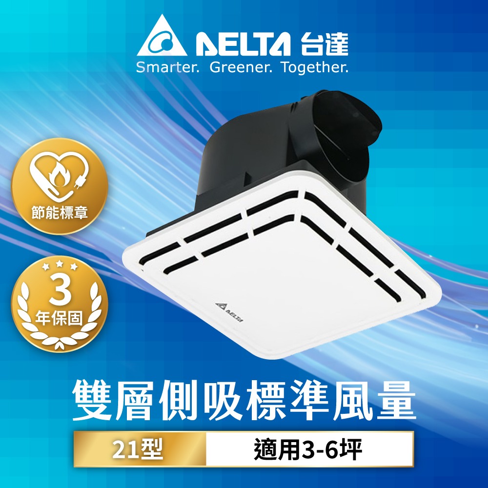台達DELTA 3-6坪 雙層側吸式面板 超靜音 DC直流節能換氣扇 21型標準風量 VFB21AAT6