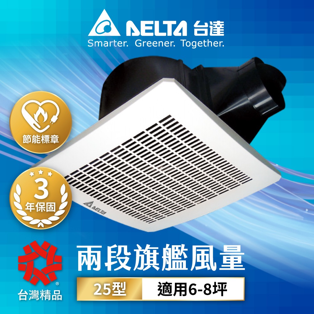 台達DELTA 6-8坪 兩段式風量控制旗艦款 高速低噪音 DC直流節能換氣扇 25型VFB25AXT