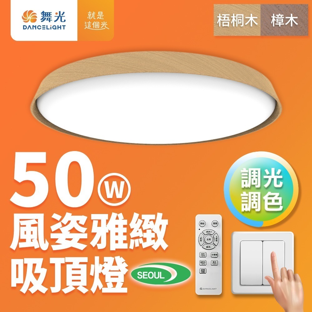 舞光 4-6坪 50W風姿雅緻調光調色 LED吸頂燈 實木外框 遙控/壁切(梧桐木紋/樟木紋)