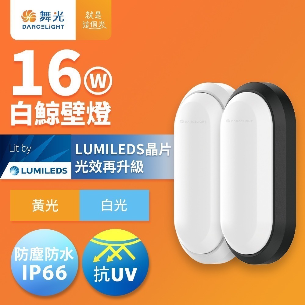 舞光 1-2坪 16W白鯨LED壁燈 抗UV 一體式快裝 IP66防塵防水 時尚白/貴族黑(白光/黃光)