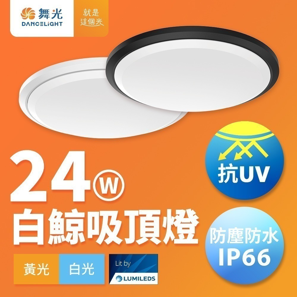 舞光 2-4坪 24W白鯨LED吸頂燈 抗UV 一體式快裝 IP66防塵防水 時尚白/貴族黑(白光/黃光)