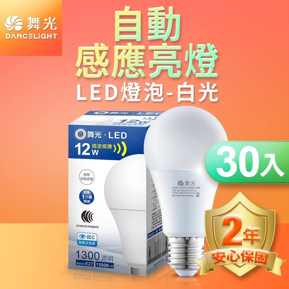 30入組 舞光 12W LED微波感應燈泡 2年保固(白光/黃光)