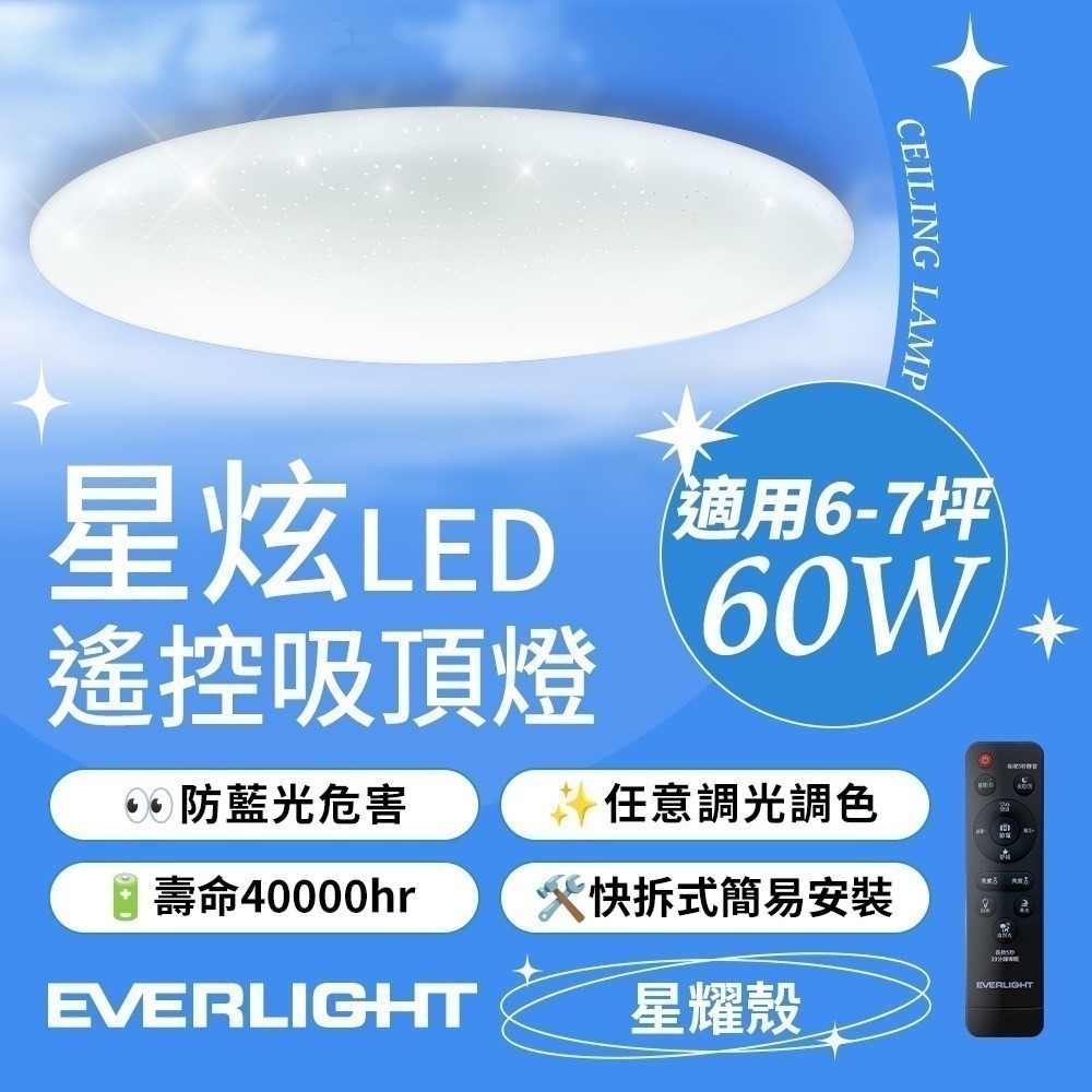 億光EVERLIGHT 6-7坪 60W 星炫 遙控 LED 調光調色吸頂燈