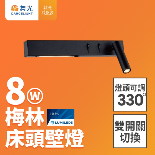 舞光 8W梅林床頭壁燈 全電壓 可調式燈頭 壁燈 牆燈 2年保固(貴族黑)