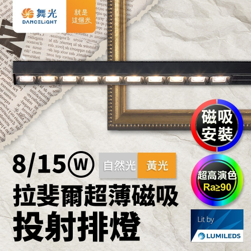 舞光 8W/12W/15W 拉斐爾 LED超薄磁吸軌道燈 窄角30度/廣角140度/可擺角 軌道條 2年保固