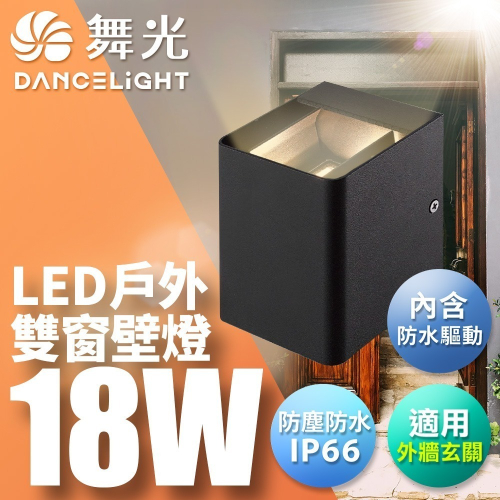 舞光 18W雙窗壁燈 可調角度壁燈 牆燈 車道燈 樓梯燈 戶外燈具 內含防水驅動器 深灰色(黃光/自然光)