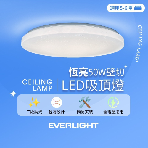 EVERLIGHT億光 5-6坪 50W 恆亮 壁切 三段調光 LED吸頂燈(星耀版)