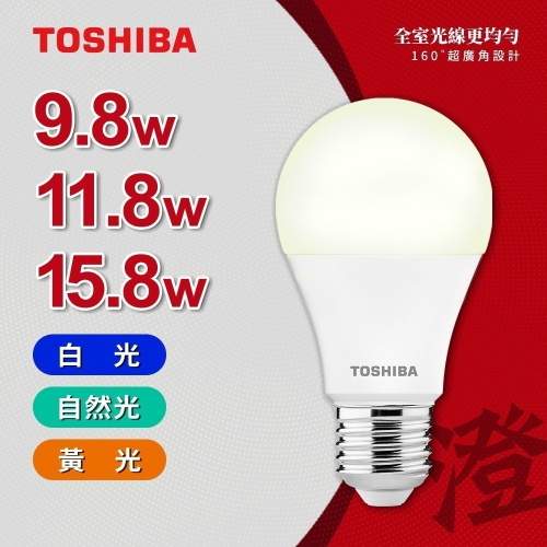 【TOSHIBA 東芝】澄系列 LED廣角燈泡 9.8W/11.8W/15.8W 高亮省電(晝光色/自然色/燈泡色)