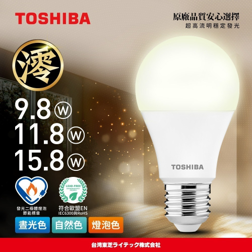 【TOSHIBA 東芝】澪系列 9.8W/11.8W/15.8W LED燈泡 3年保固 節能標章(晝光/燈泡/自然色)