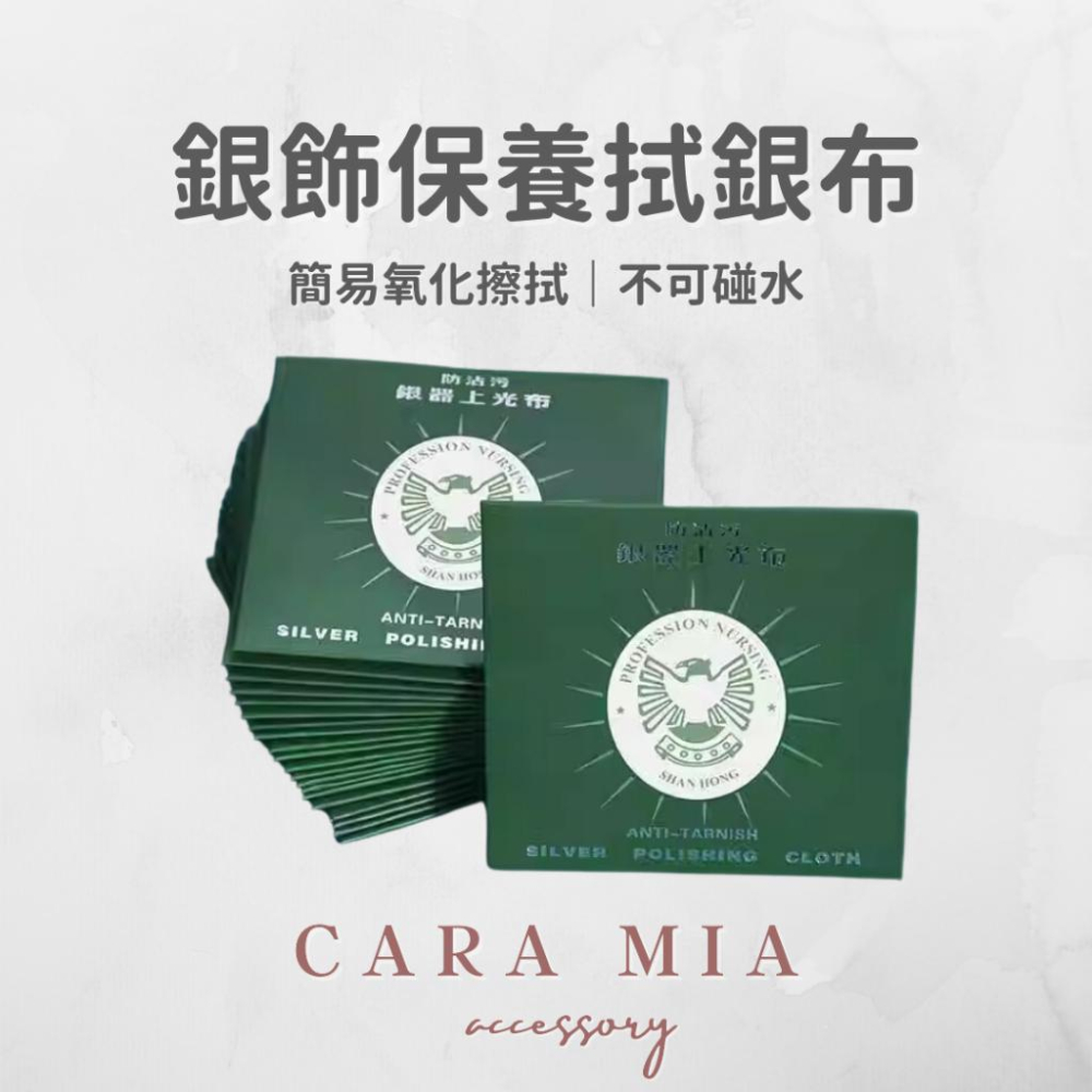 品名:銀器保養拭銀布 尺寸:8*8cm 規格:一代布為簡易氧化用,平常若有再擦拭,買一代即可; 二代布有額外添加擦銀藥水,適合氧化較嚴重的銀飾保養 顏色:顏色隨機,無法挑選喔! https://s-cf-tw.shopeesz.com/file/tw-11134208-7r98t-lxgra5jgw9bac3 https://s-cf-tw.shopeesz.com/file/tw-11134208-7r98s-lxgra5jgxnvq07 https://s-cf-tw.shopeesz.com/file/tw-11134202-7r98t-luaqf8zrabv0d0 https://s-cf-tw.shopeesz.com/file/tw-11134202-7r991-luaqf97iyylr8e 歡迎光臨【CARA MIA】 - 親愛的! 我們是一家專營高品質飾品的零售批發經銷商, 提供各種項鍊、耳環、耳針、戒指以及飾品包材和飾品材料等配飾。 我們的品牌理念是「願你真的能找到自我、忠於自我、活出自我」。 CARA MIA相信每個人都是獨一無二的,值得被善待和珍惜。 因此,我們提供各種獨特風格的飾品,讓您能夠展現自己的個性和獨特魅力。 無論您喜歡簡約、華麗、時尚還是優雅, 純銀還是鈦鋼,輕奢還是平價, 包含各種場合、客製化及送禮的需求,我們都有適合您的飾品選擇。 除了致力於提供優質的飾品及材料,確保我們的商品符合高品質標準。 我們也很注重外觀設計,已及佩戴舒適度和耐用性。 我們由蝦皮代開電子發票,如有需要請至email後台索取。 為保障雙方權益,請您在收到貨物時開箱錄影, 若有任何問題並不要先行完成訂單,以便進行退換貨服務。 物流提供宅配和超商取貨的選項, 確保您能夠快速收到所訂購的心愛飾品。 而我們的出貨時間通常在0.5-2天內。 若有任何問題,或是合作洽詢, 您可以透過蝦皮聊聊與我們聯繫, 或者發信至holacreation.tw@gmail.com。