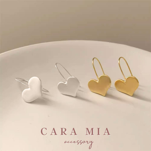 【CARA MIA】垂墜式愛心耳針 耳環 純銀耳環 耳釘 耳針 耳扣 耳飾 韓國 韓系 ins