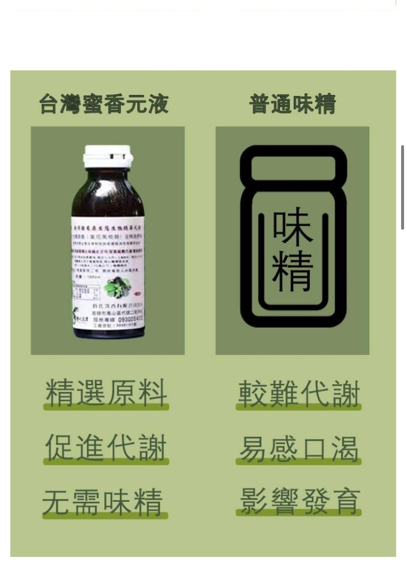 以台灣密香全株為原料 (包含花🌸、菓🍐、枝🎋、葉🌿、木🌳) 經現代原生態生物科技技術提取活性物質和成份 滋補強身,其能量和元氣遍走全身,促進新陳代謝,健康維持! 容量:100cc/瓶,5瓶/盒 用法1:每日1-4次(三餐睡前),每次2-5ml微量倒入舌下慢慢吸收,經心臟傳送全身,或2-4倍溫水(45度以下)稀釋飲用 用法2:可作為天然的食品調味香料,炒菜🥗、煲湯🍲、煎蛋🍳、天然又健康,不必添加多餘的味精,風味絕佳! 保存期限:5年,開封後需冷藏