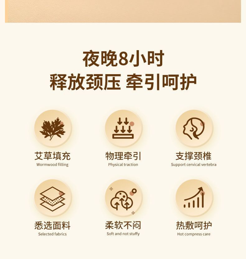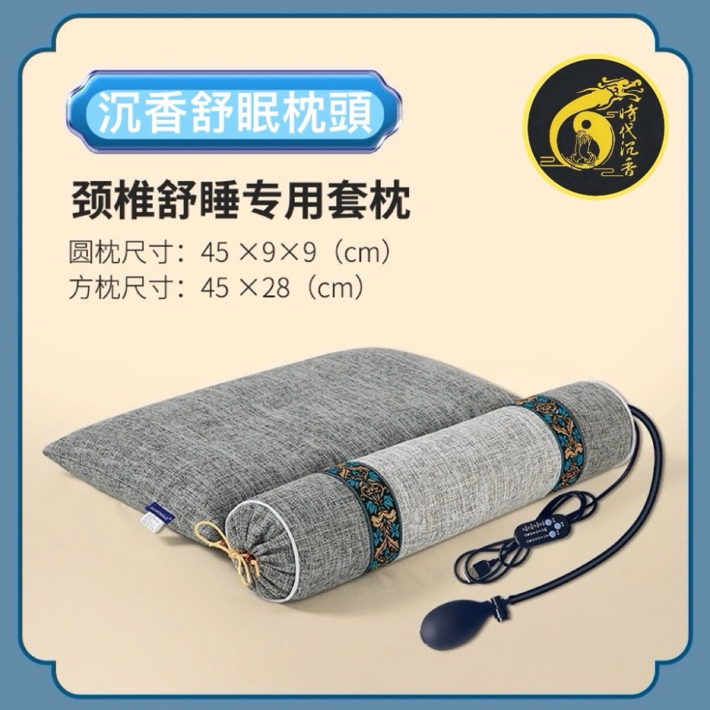 产品采用“圆枕+方枕”组合。圆枕精准支撑颈椎生理曲度,方枕全面承托头部,从物理上解决“脖子僵、睡不好”的问题。枕芯常为沉香颗粒与记忆棉混合,在提供支撑的同时,缓慢释放安神香气。