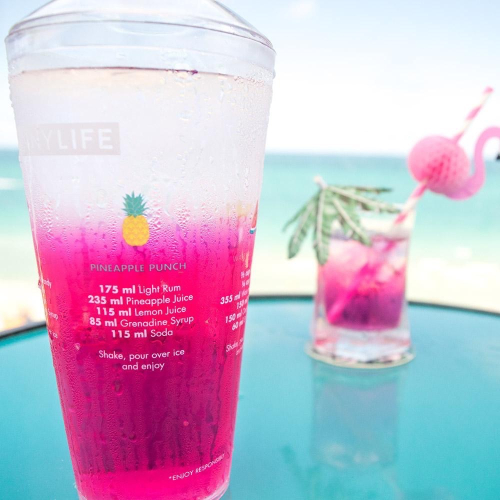 雪克杯上方還有標示調配譜 (超級可愛貼心)