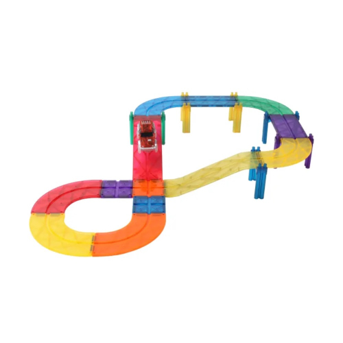 透過磁力互相連接軌道片,放上ㄇ型支架,做出彎道與斜坡來增加速度感吧!內附2輛電動軌道車,專屬的卡榫可以在磁力軌道片上自動行駛。不同傳統的平面軌道,磁力拓荒者可以組出具有高低落差的立體賽道,看似簡單,但其實是非常需要動腦思考的組合喔。