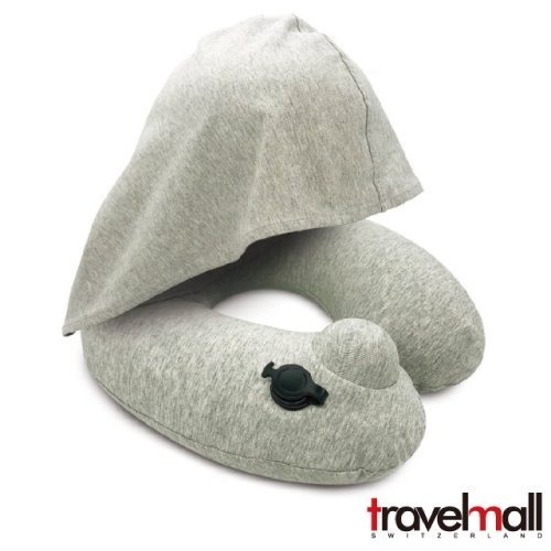 Travelmall 專利3D按壓式充氣連帽枕-灰 (袋裝版)