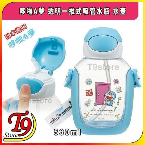 日本進口 哆啦A夢 透明一推式吸管水瓶 水壺 (PDSH6DX款式) (530ml)