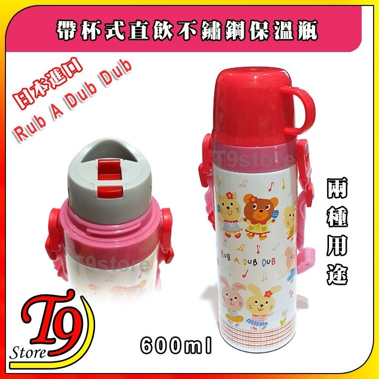 日本進口 Rub A Dub Dub 2種用途 帶杯式直飲不鏽鋼保溫瓶 (600ml) (紅色)