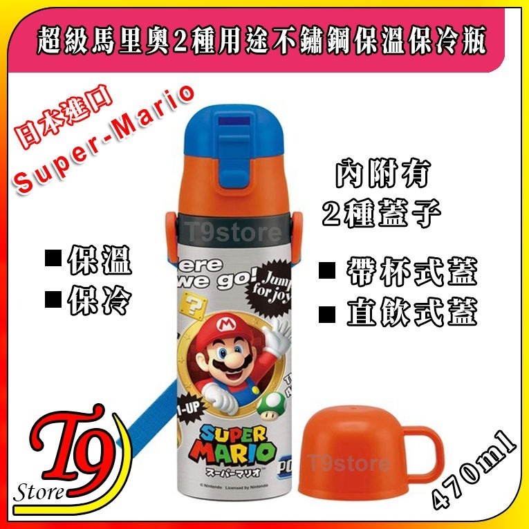 日本進口 Super-Mario (超級馬里奧) 2種用途 帶杯式 直飲式 不鏽鋼保溫保冷瓶 (470ml)