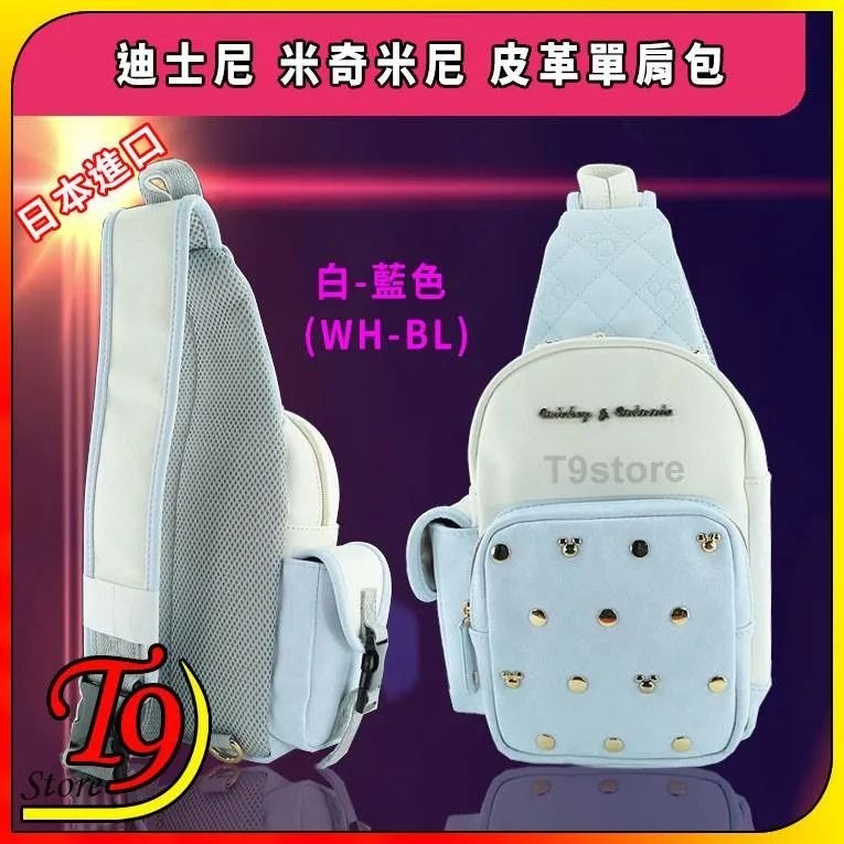 日本進口 Disney (迪士尼) 米奇米尼皮革(白-藍色)單肩包 斜背包 通勤包 休閒包 運動型背包