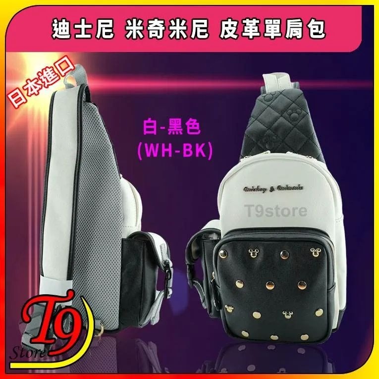 日本進口 Disney (迪士尼) 米奇米尼皮革(白-黑色)單肩包 斜背包 通勤包 休閒包 運動型背包
