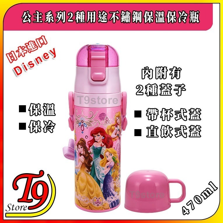 日本進口 Disney (公主系列) 2種用途 帶杯式 直飲式 不鏽鋼保溫保冷瓶 (470ml)