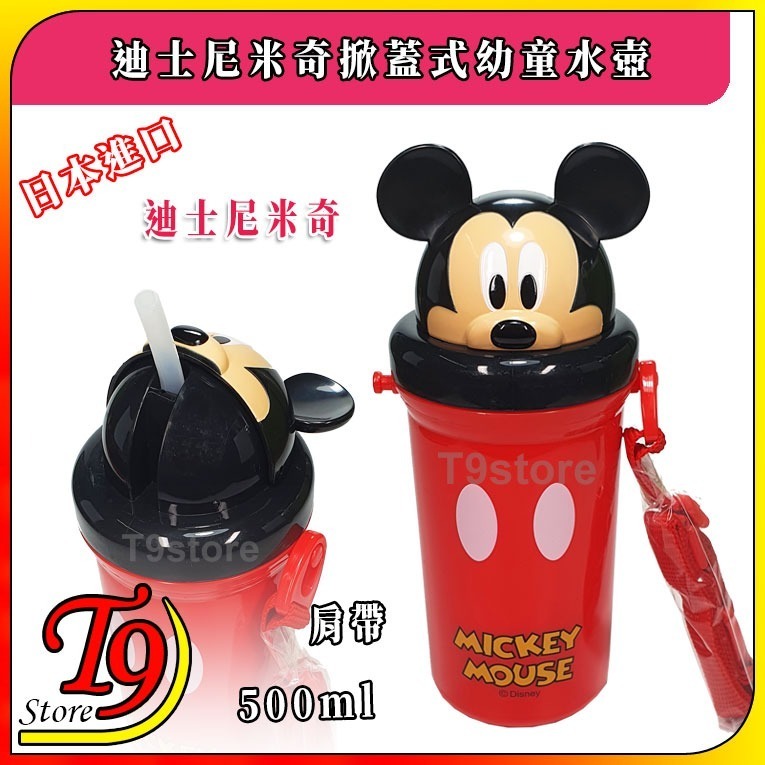 日本進口 Disney (迪士尼) 米奇掀蓋式幼童水壺 (500ml) (有肩帶)