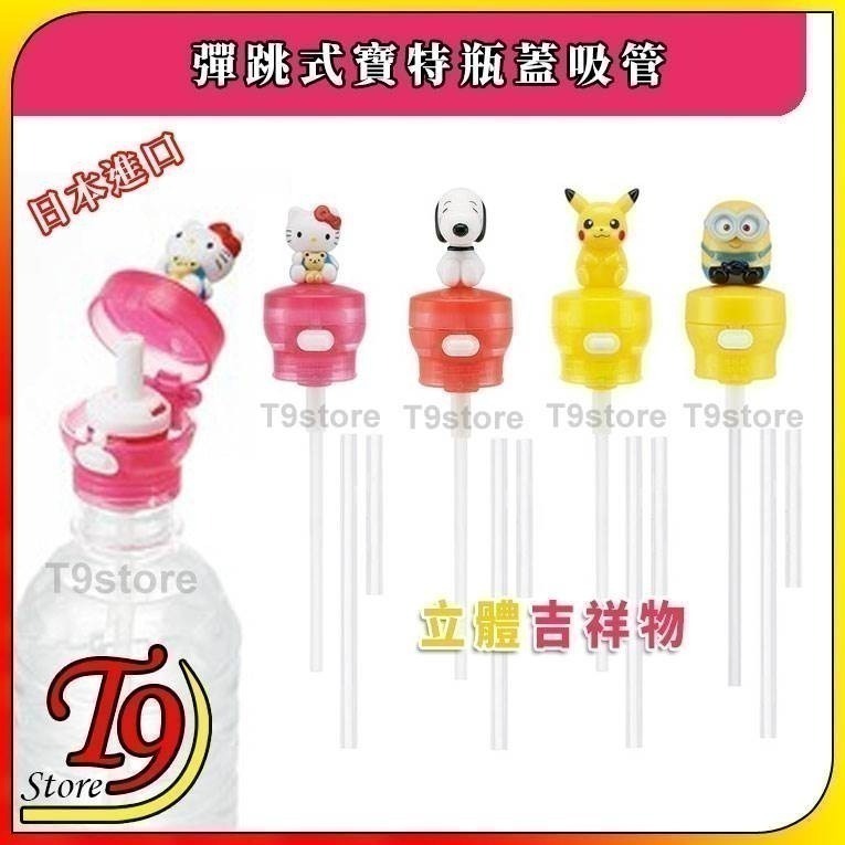 【T9store】日本進口 立體吉祥物 彈跳式寶特瓶蓋吸管 (凱蒂貓 史努比 皮卡丘 小小兵)