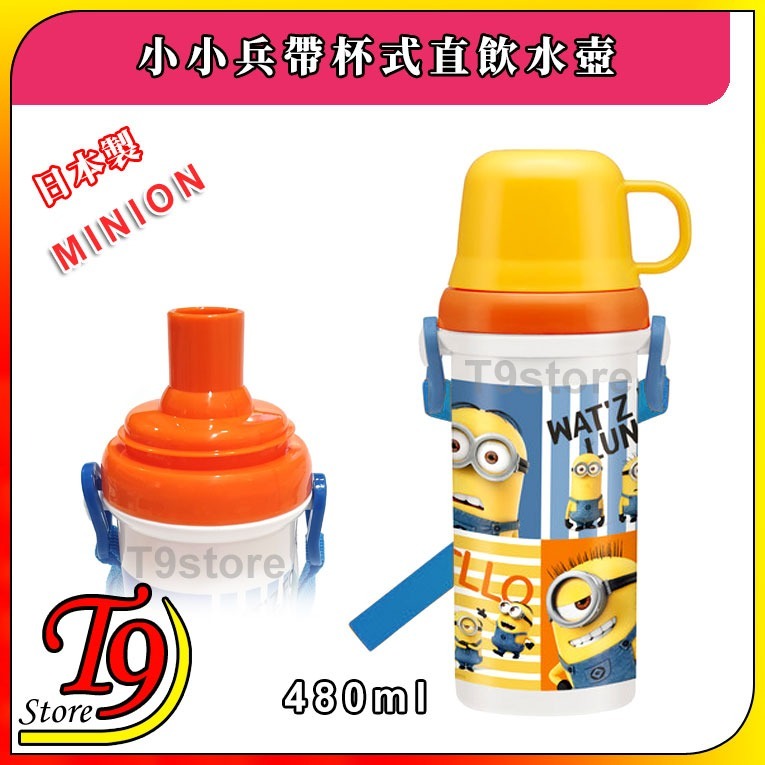 日本製 Minions (小小兵) 帶杯式直飲水壺 水瓶 兒童水壺 (480ml) (有肩帶)