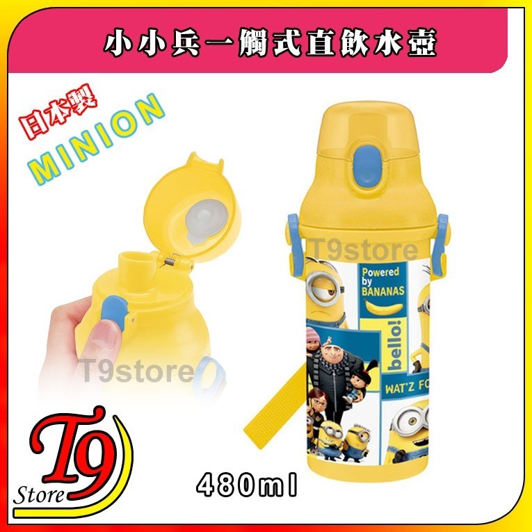 日本製 Minions (小小兵A) 一觸式直飲水壺 水瓶 兒童水壺 (480ml) (有肩帶)