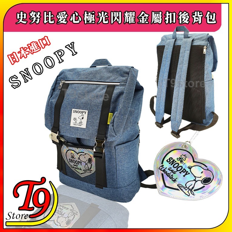 日本進口 Snoopy (史努比) 愛心極光閃耀吊飾金屬扣後背包(OC藍色) 旅行背包 通勤背包 休閒背包