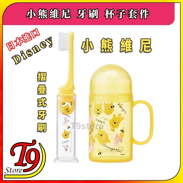 日本進口 Disney (迪士尼) 小熊維尼 摺疊牙刷 杯子套件