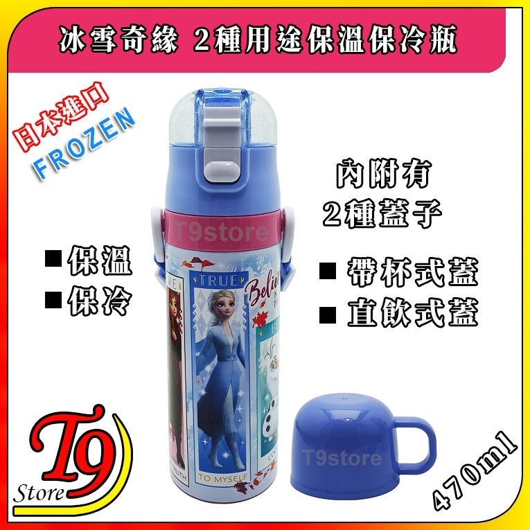 日本進口 Frozen (冰雪奇緣) 2種用途 帶杯式 直飲式 不鏽鋼保溫保冷瓶 (470ml)
