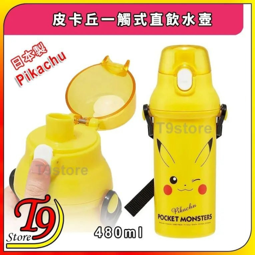 日本製 Pokemon (寶可夢 皮卡丘) 一觸式直飲水壺 水瓶 兒童水壺 (480ml) (有肩帶)