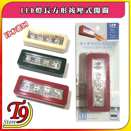 日本進口 LED燈長方形按壓式開關 背面帶磁鐵