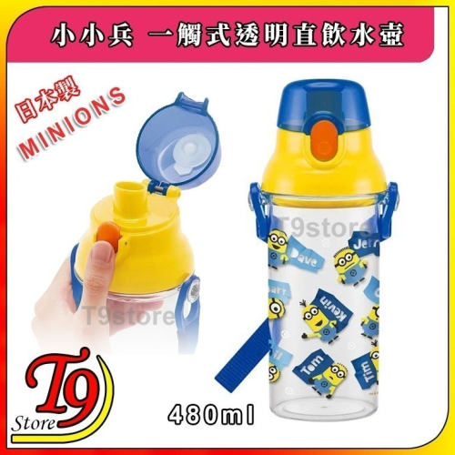 日本製 Minions (小小兵) 一觸式透明直飲水壺 水瓶 兒童水壺 (480ml) (有肩帶)