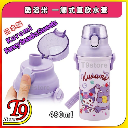 【T9store】日本製 Kuromi (酷洛米) 一觸式直飲水壺 水瓶 兒童水壺 (480ml) (有肩帶)