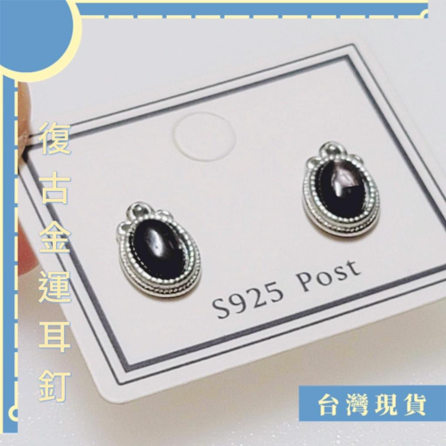 耳針_金運石蛋面耳針 復古耳針 金運石 925純銀