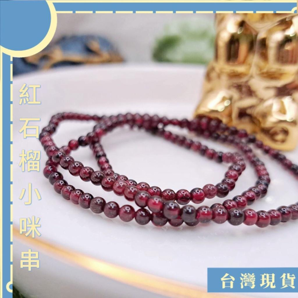 手珠_石榴石小咪手串 三圈款 3mm+ 小珠 手串素材 紫牙烏