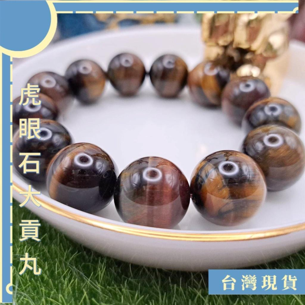 手珠_品質不錯的 藍黃虎眼石大貢丸手珠 18mm 18圍 招財 勇氣