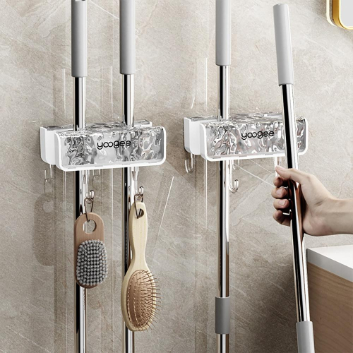 『熊愛貝百貨』壁掛架浴室陽台清潔用品掃把夾波紋免打孔輕奢款雙頭拖把夾