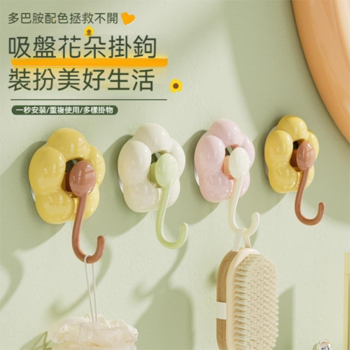 『熊愛貝百貨』可重覆黏貼掛架無痕加力面積強力真空掛勾花朵造型小花掛勾
