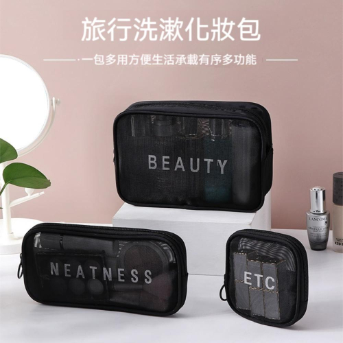 『熊愛貝百貨』網紗透氣拉鏈化妝包泡湯玩水便攜分裝袋3C配件包旅行收納包三件套