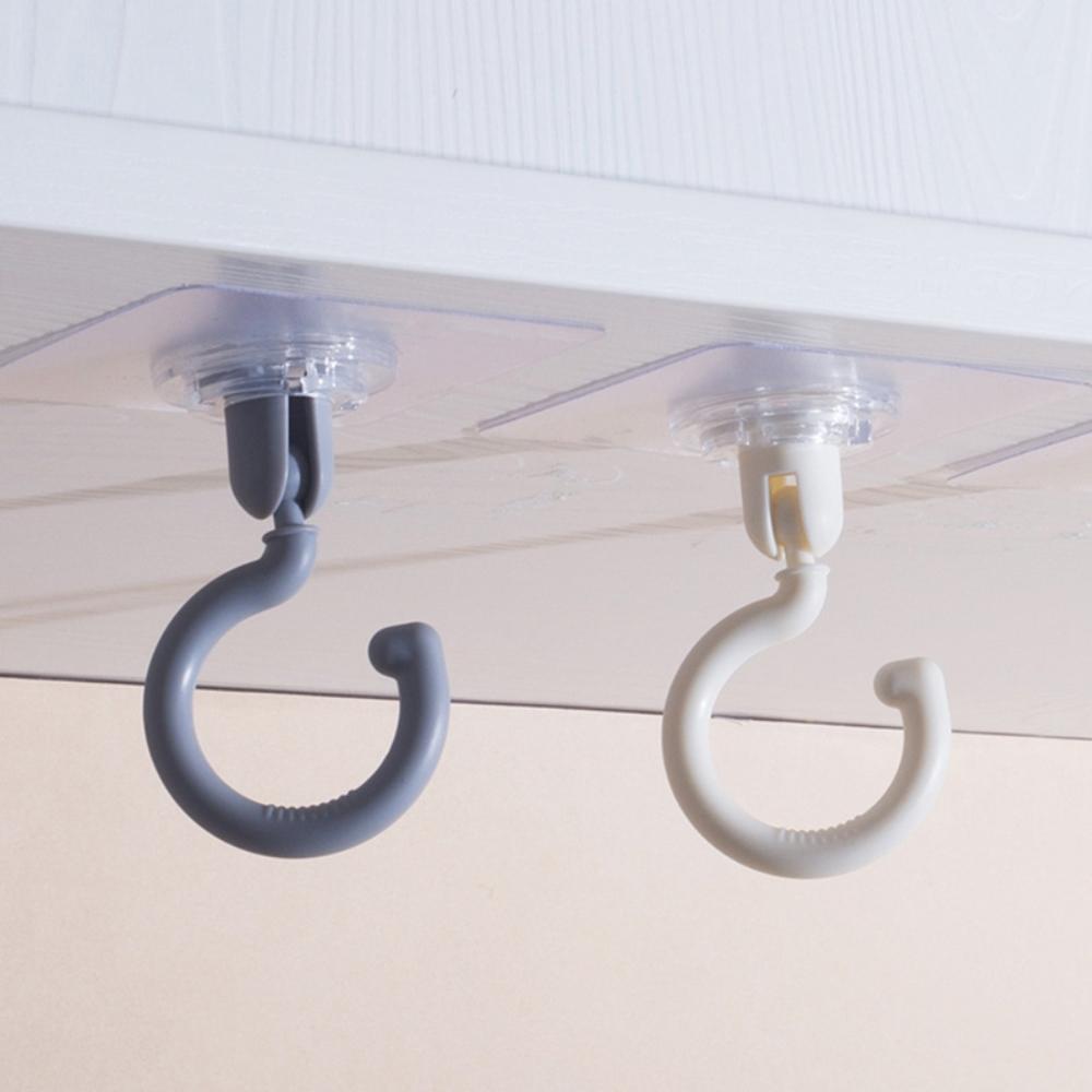 『熊愛貝百貨』無痕壁掛式360度旋轉掛勾吸頂式免打孔衣帽勾浴室廚房抹布毛巾勾