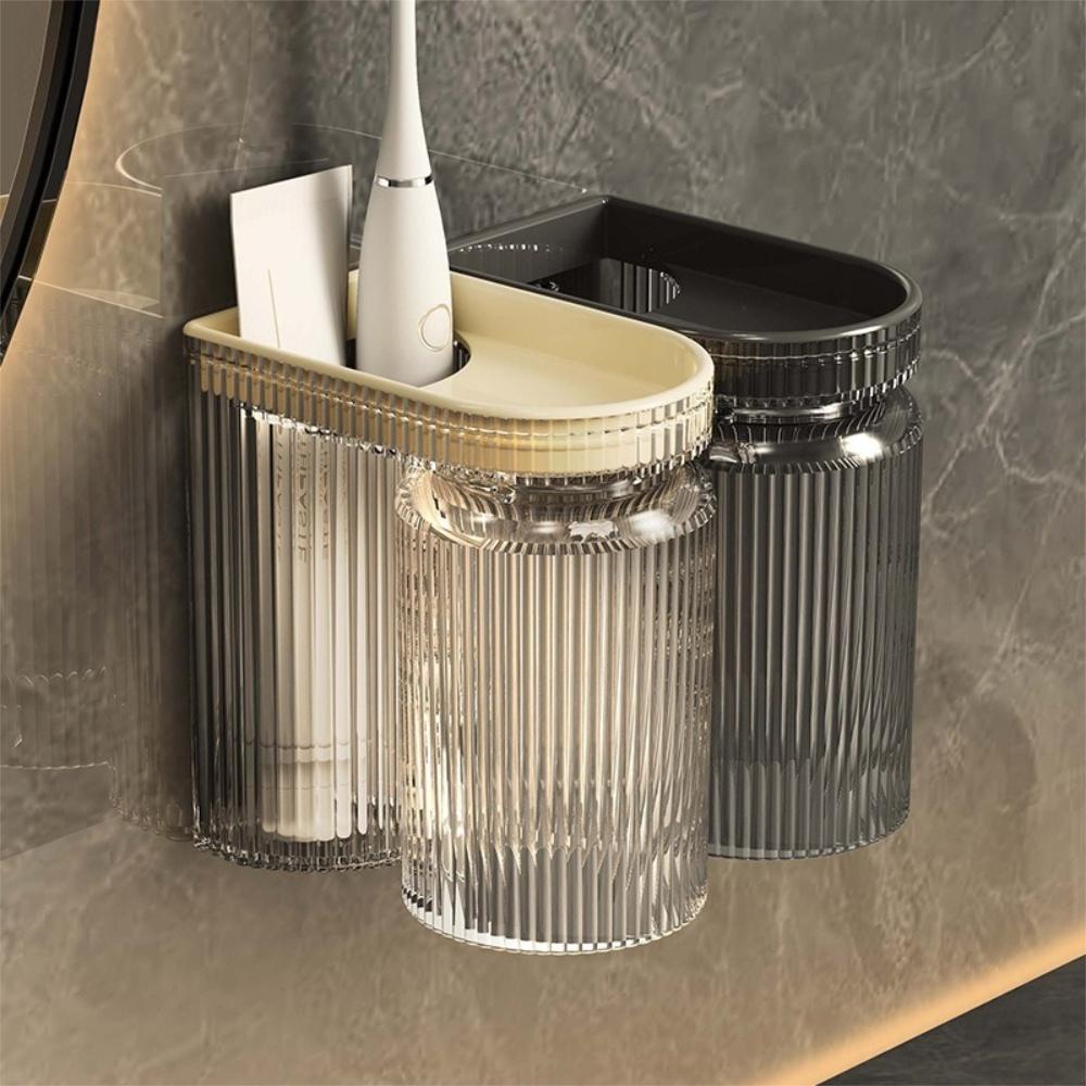 『熊愛貝百貨』牙刷牙膏收納架不積水洗漱杯組材質升級PET+PP壁掛倒扣式漱口杯組