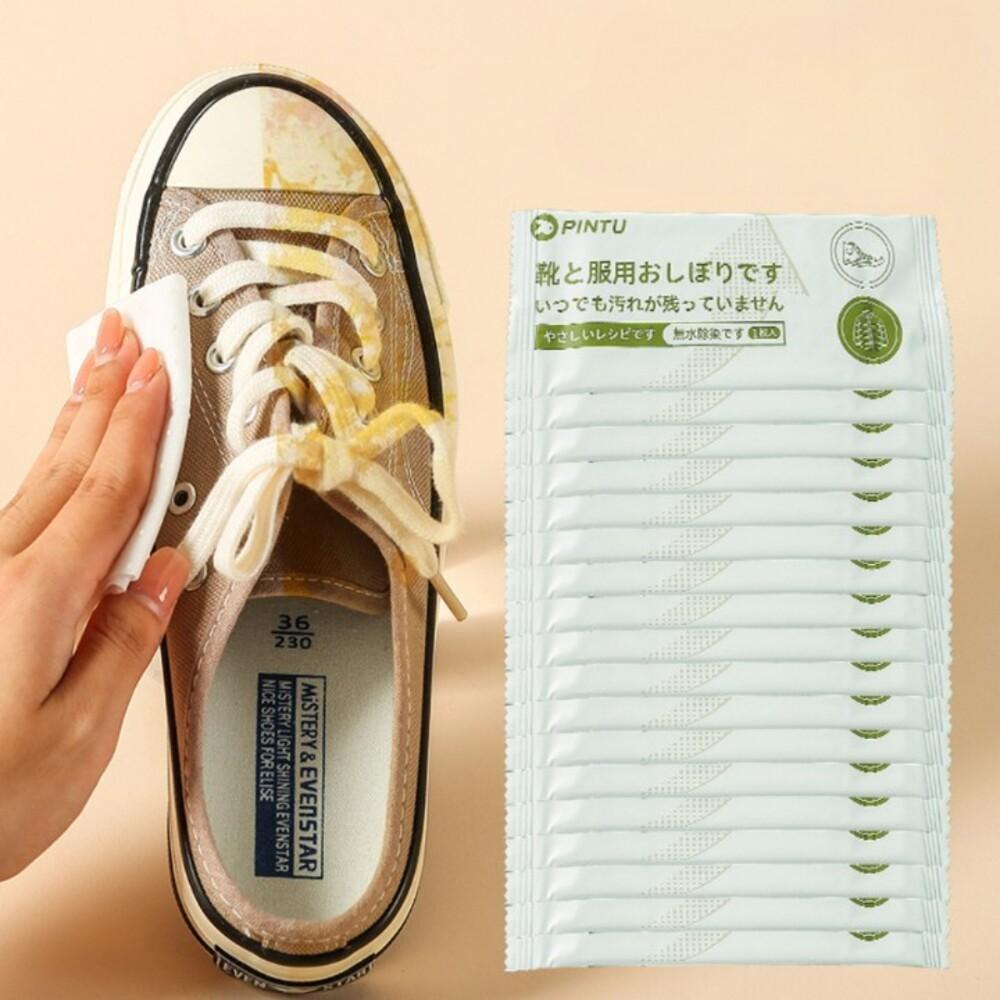 『熊愛貝百貨』衣物鞋類清潔濕紙巾便攜式衣服報污濕巾應急去漬免洗清潔巾十入組