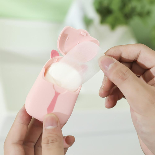 『熊愛貝百貨』便攜式香皂片迷你可愛小豬盒裝肥皂紙兒童學生戶外洗手片香皂片