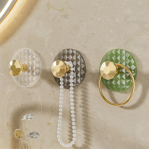 『熊愛貝百貨』輕奢透明壓克力菱格紋掛勾浴室玄關無痕免打孔門後衣帽收納掛勾